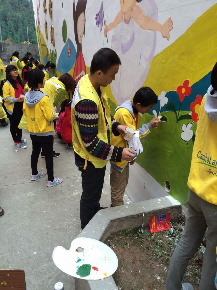 活动中,学生党员们尽情发挥专业特长,以绘画这种独特的方式传播文化,为孩子们带去艺术魅力。墙绘过程中,党员同志们相互合作、积极配合,在天气降温、材料不足的条件下,在较短的时间内依然高效的完成了任务,反映出学生良好的思想素质。