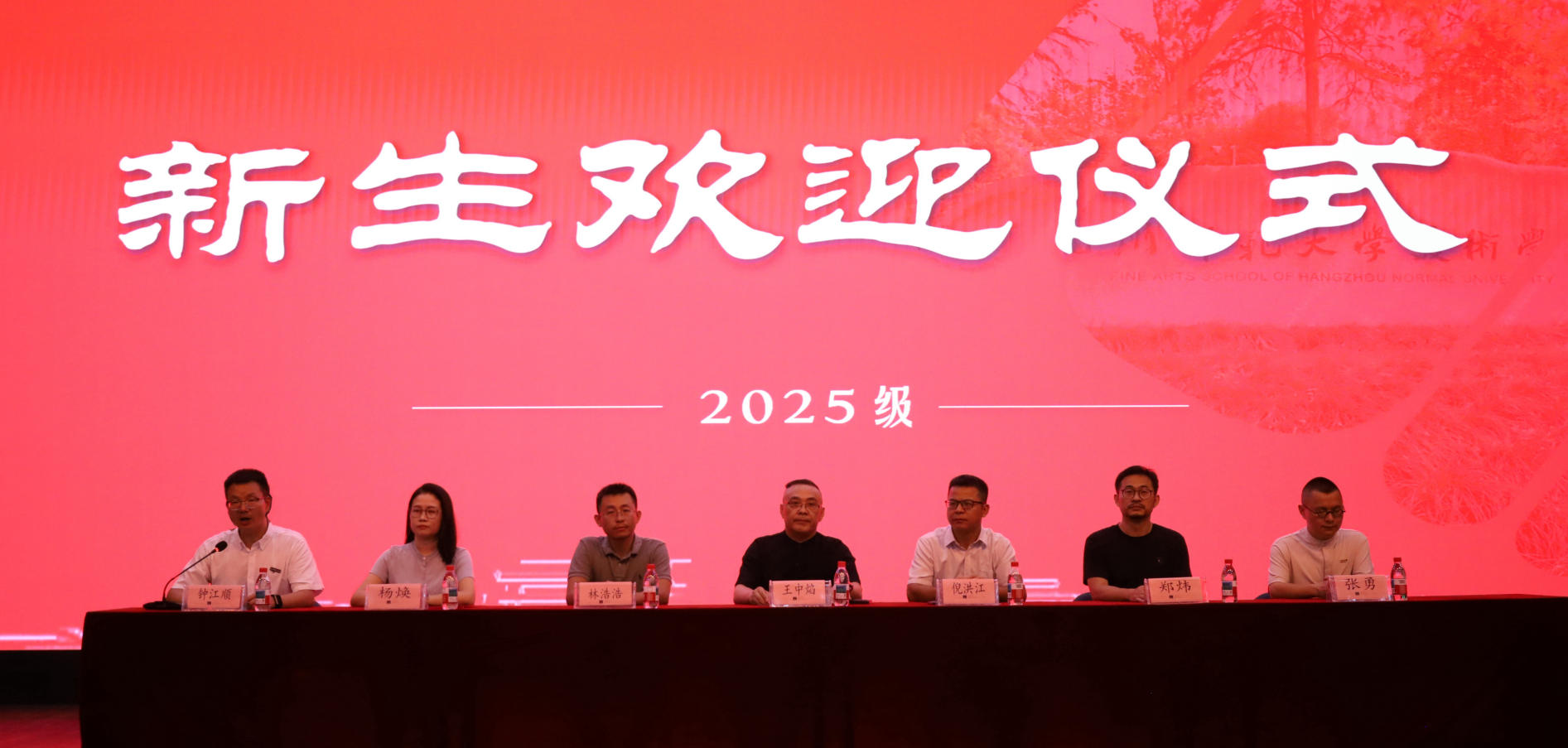 9月7日,杭州师范大学美术学院2025级新生欢迎仪式在下沙校区钧儒厅隆重举行。学院院长王中焰、党委书记倪洪江、副院长林浩浩、本科教学领导小组副组长郑炜、学术副院长杨焕、校友代表张勇、办公室主任缪红华、教务科科长张玲娣、美术学系主任彭德、设计学系主任郭涛等学院领导嘉宾职能部门负责人出席仪式,还有专业负责人、教研室主任、学科点负责人、新生班主任、辅导员、近五年新进教师、在校生代表以及全体2025级新生到场参加,仪式由学院党委副书记钟江顺主持。
