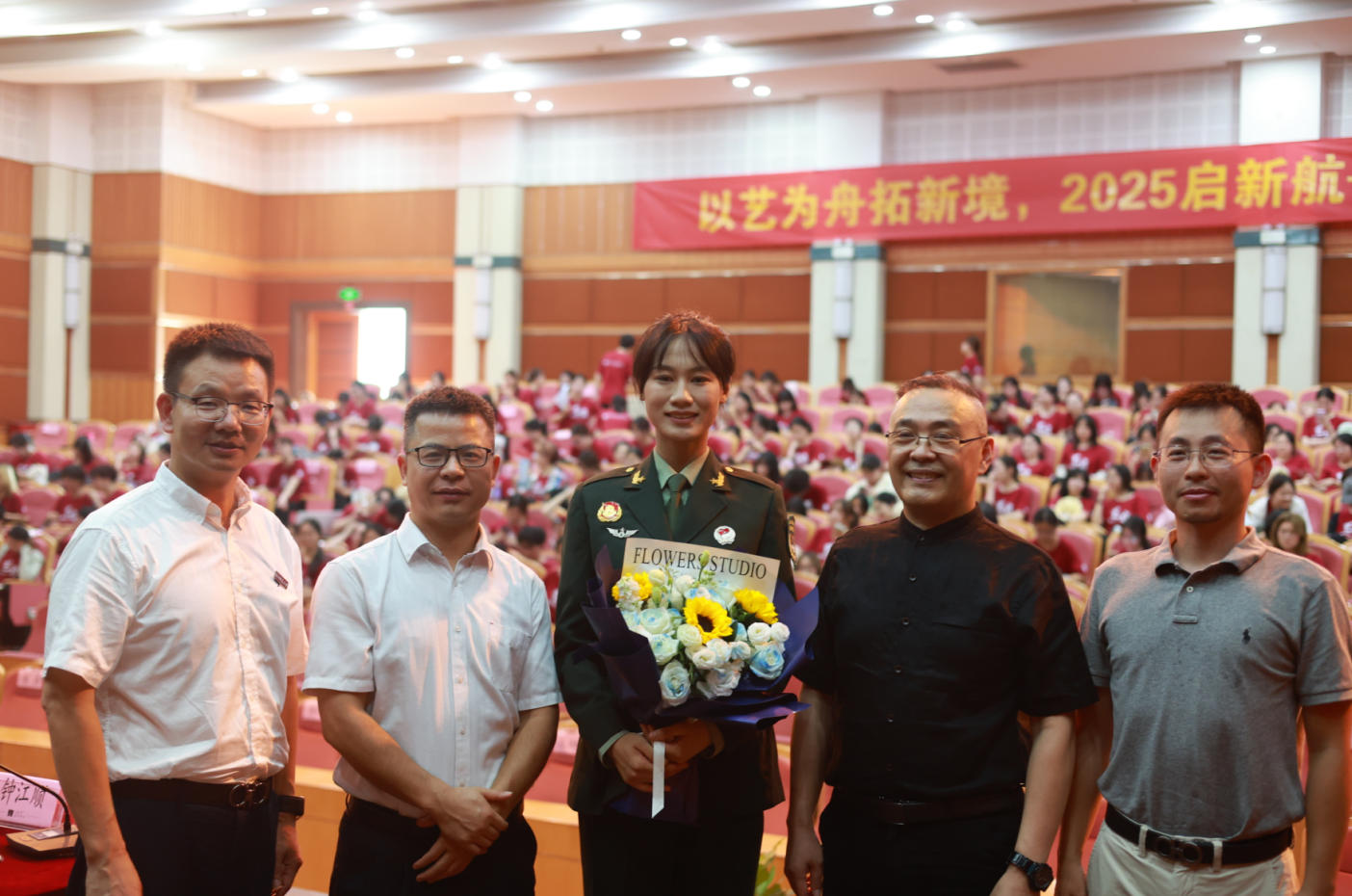 歌声序幕开。六位十佳歌手献唱《第一天》,用活力旋律点燃现场;伴随雄壮国歌,全体师生肃立,2025级新生的大学篇章正式翻开。