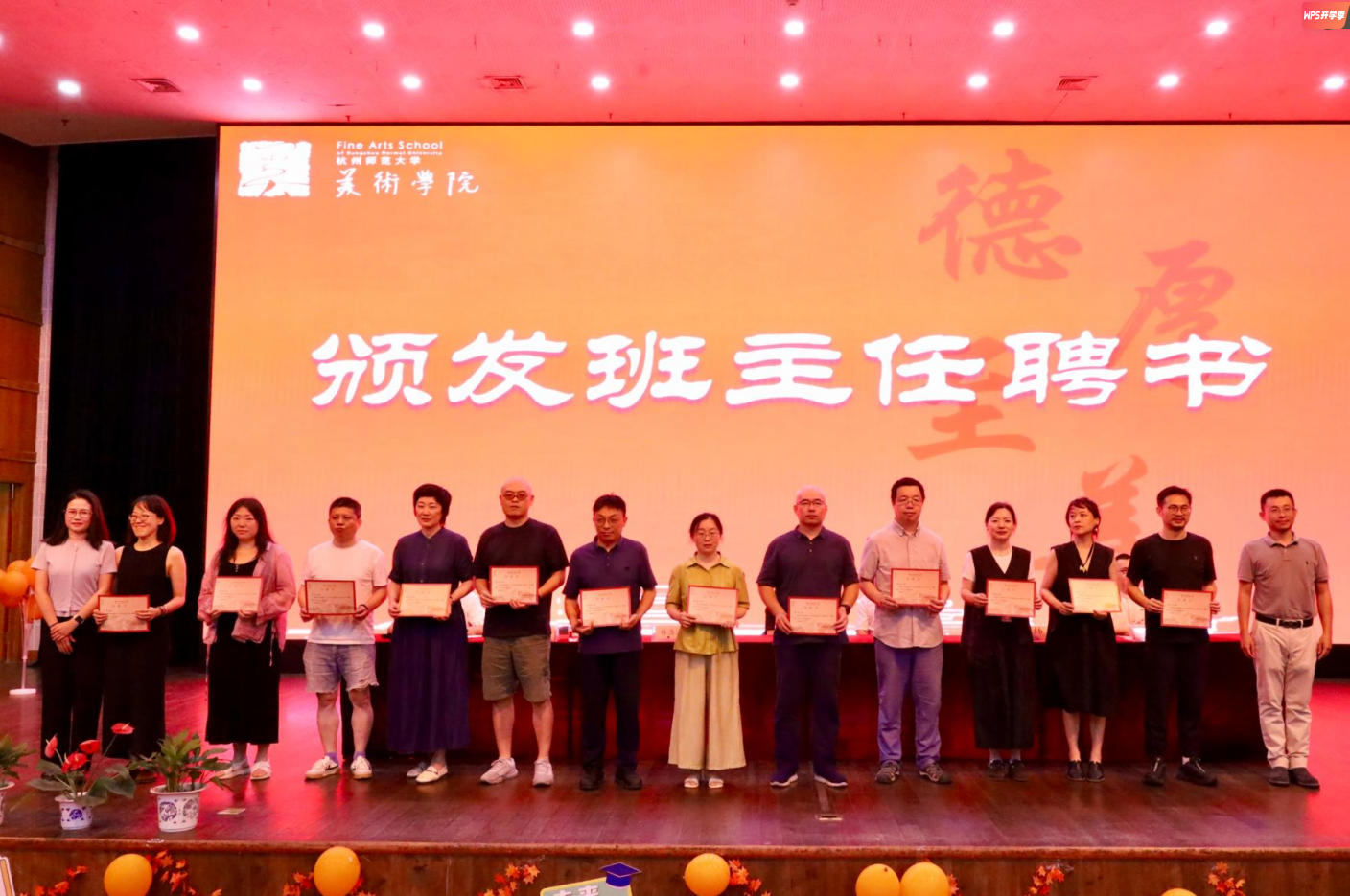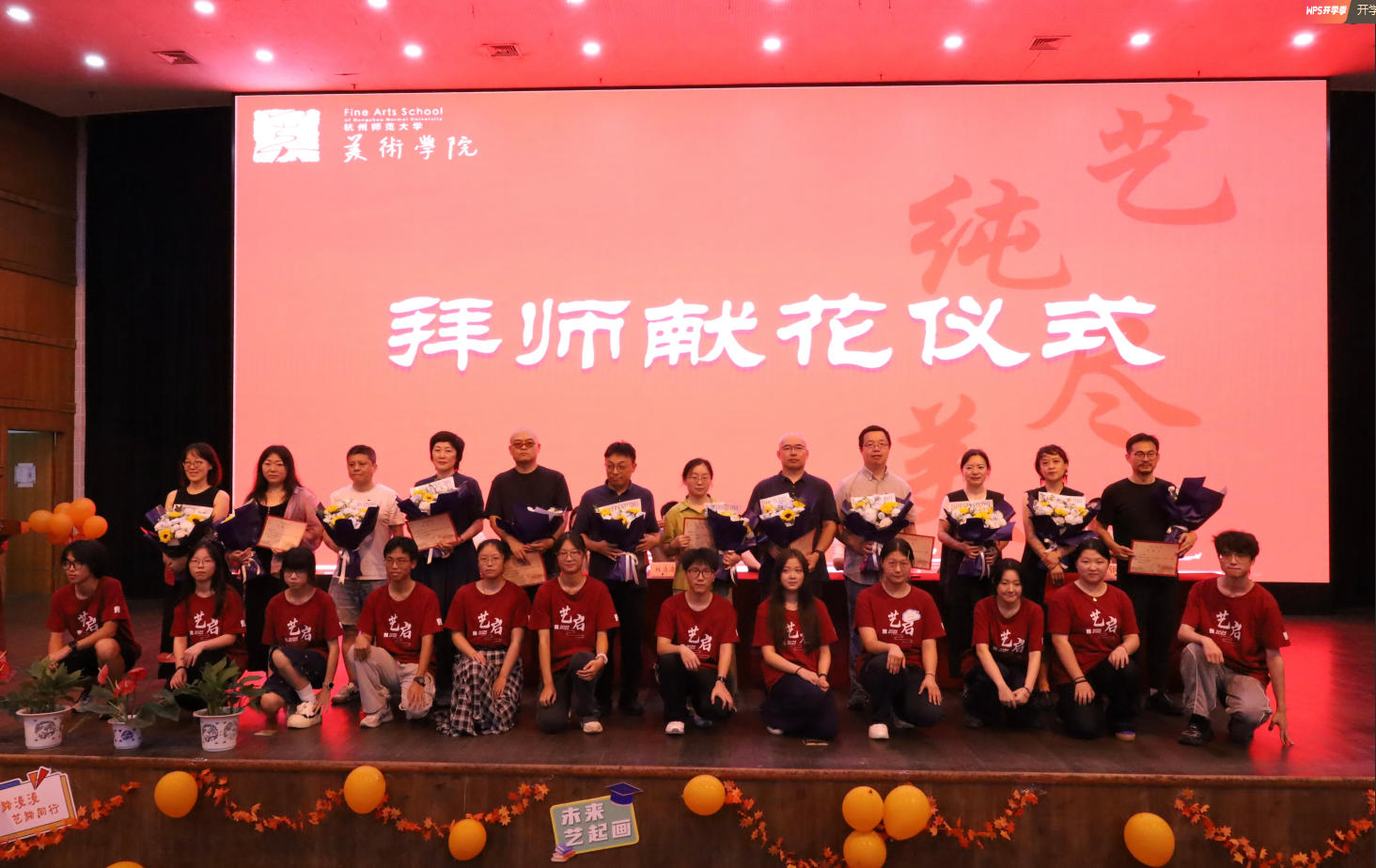 仪式中,倪洪江书记宣读新生班主任聘任文件,林浩浩、杨焕副院长为班主任颁发聘书。随后,新生代表向班主任敬花、行“拜师礼”,鞠躬合影的瞬间,不仅是师生情谊的开启,更承载着美院“传帮带”的育人传统。