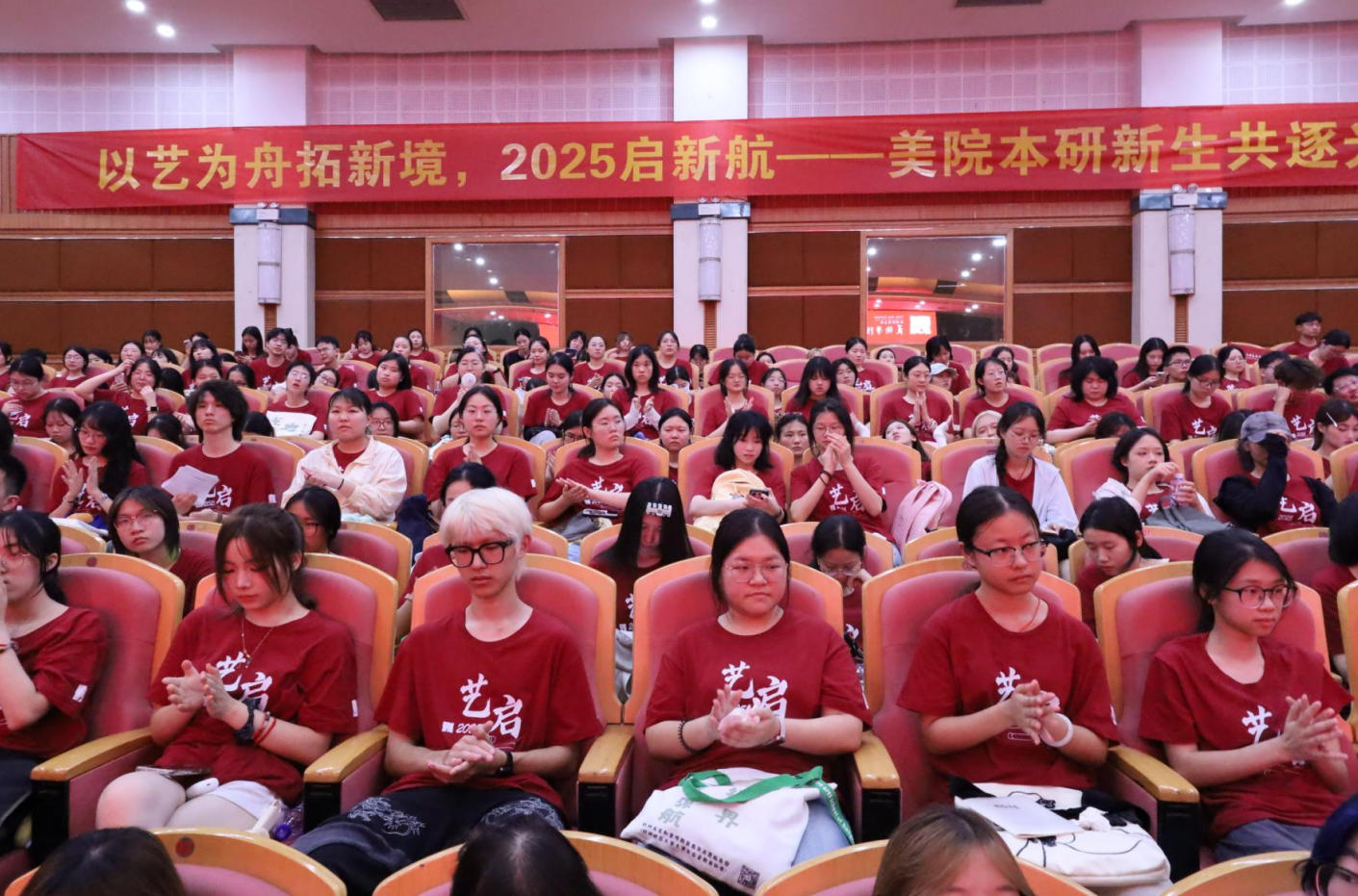 掌声落,新程启。这场欢迎仪式,是美院对新生的期许,更是艺术精神的传承。愿2025级新生永葆“感受力”、锤炼“手上功”、激发“创造力”、涵养“思考力”、恪守“坚持力”,在美院的学术丛林里蓬勃生长,以梦为马,在艺术之路上乘风破浪,书写属于自己的青春华章。