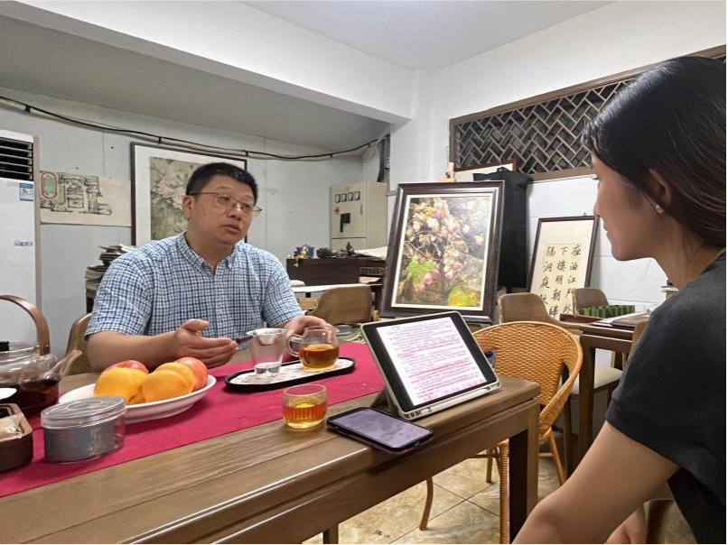 2025年8月22日,学军中学美术教师戴华杰受邀接受我校美术学院暑期“寻访校友足迹”实践小分队的专访。戴华杰校友从中师毕业后进入杭师大美术学院,自此踏上艺术教育与成长之旅。从师大的画室到中学的课堂,从技能传授到素养培育,他的经历折射出一名美术教师从成长到成熟的蜕变历程,言语之间饱含着对美育事业的执着与对人文精神的追求。