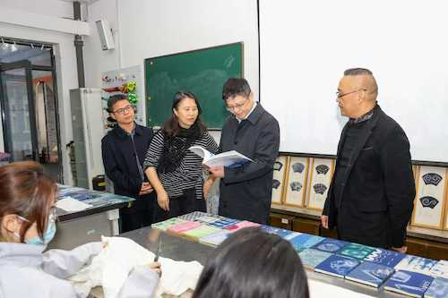 在美术学院,唐睿康实地调研了扎染、陶艺、漆艺工作室等设计学系实验室,书法、山水画等美术学系教学课堂,以及图书馆、学生食堂等教学生活空间,全面考察学院办学条件与育人环境,随后召开座谈会。