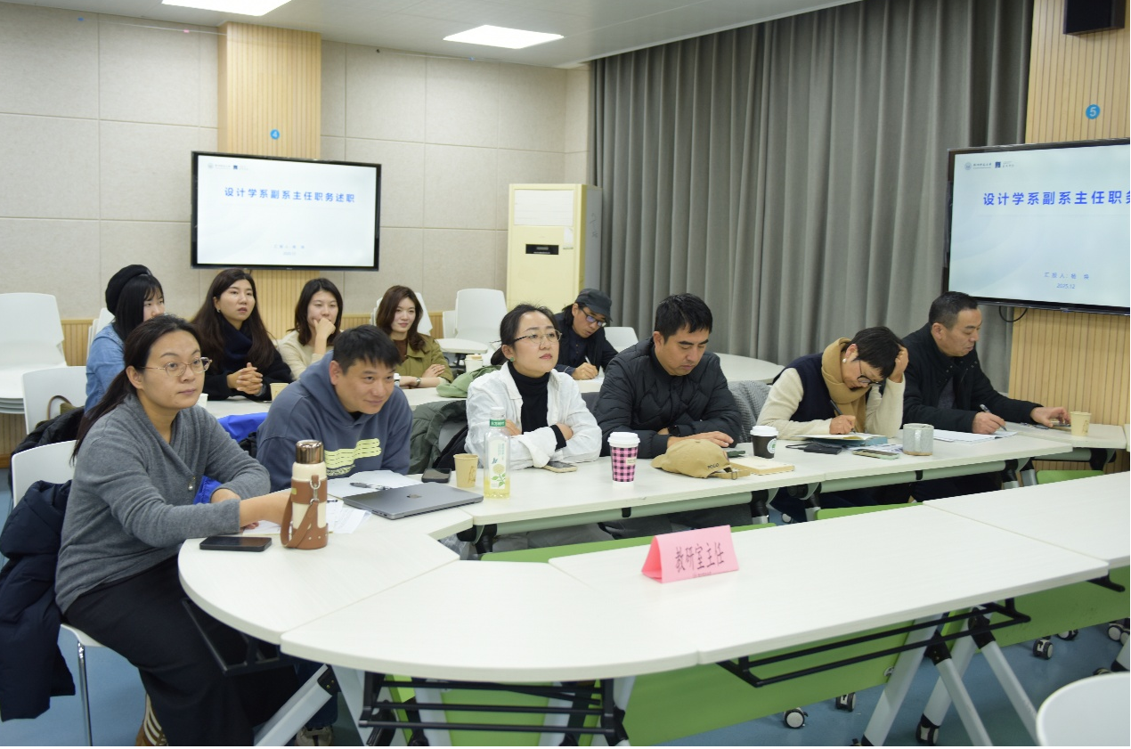 2025年12月22日,美术学院召开全院系主任、教研室主任述职报告会。学院院长王中焰、党委书记倪洪江等院领导班子成员以及青年教师代表出席会议,认真听取了美术学院系主任、教研室主任的任期述职汇报。会议由倪洪江书记主持。