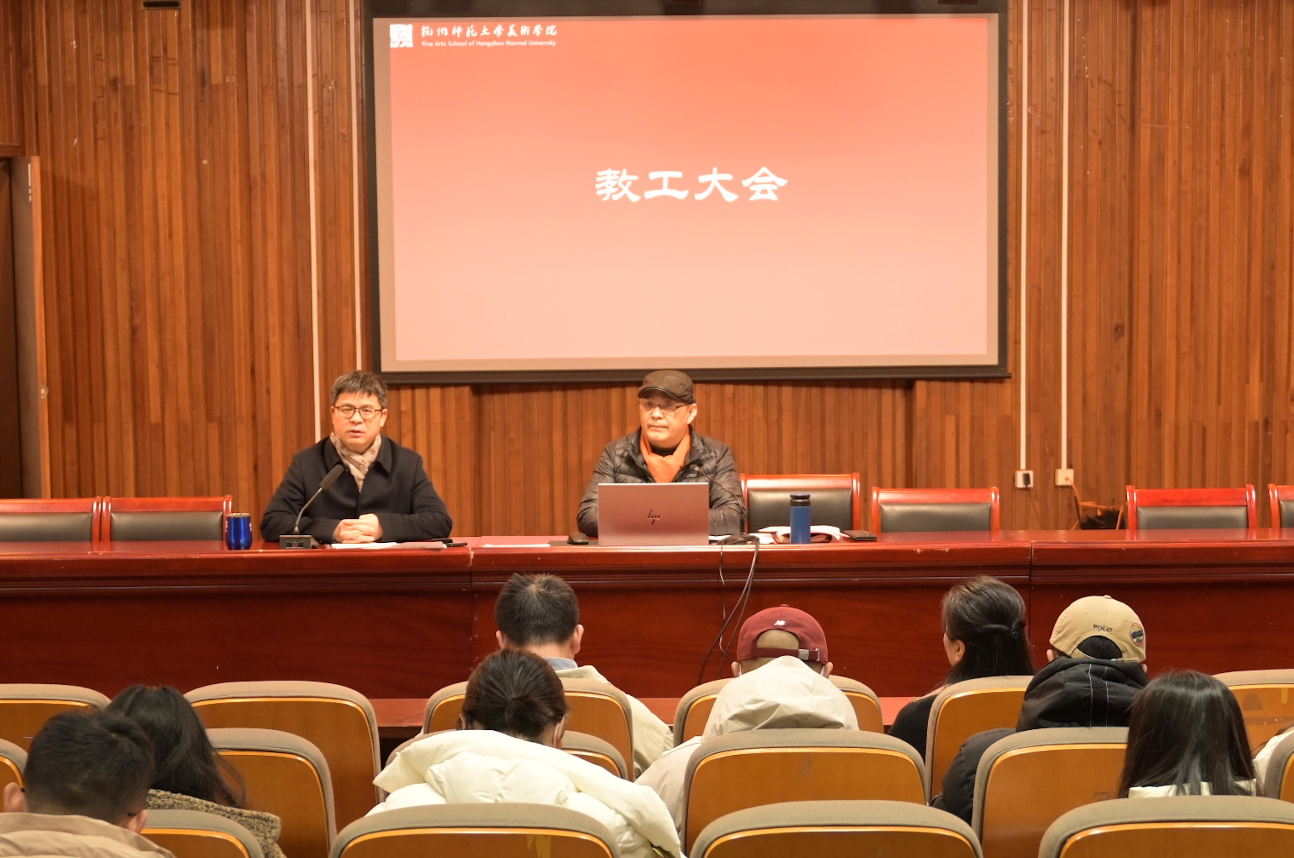 1月19日上午,美术学院期末教工大会暨领导班子述职评议会在玉皇山校区举行。院长王中焰、党委书记倪洪江等领导班子成员,全体教职工齐聚一堂,总结过往、表彰先进、部署未来。会议由倪洪江主持。